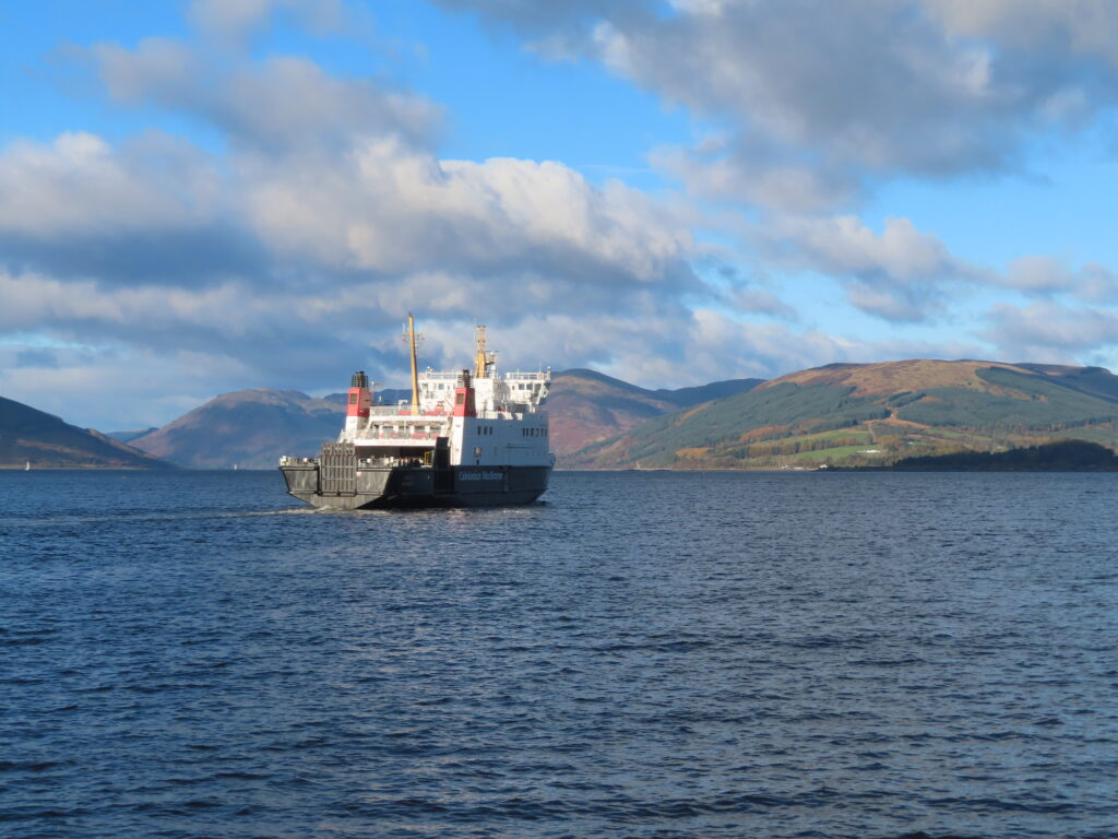 Get off the train and go down the adjoining walkway to get the ferry (operated by CalMac). The scenic crossing through the First of Clyde takes around 35 minutes.